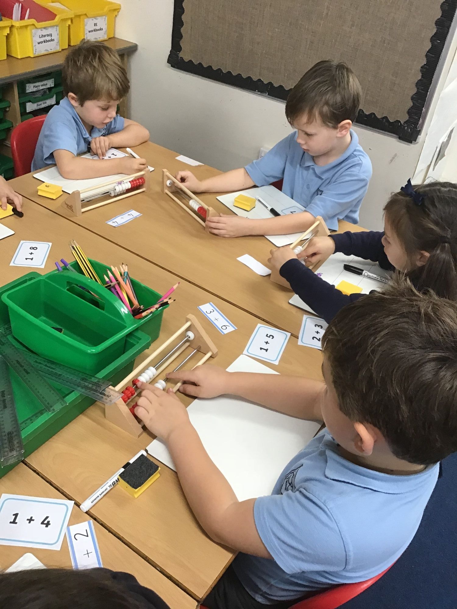 Murphy class have been doing a practical lesson on writing number sentences and using part-whole models and cubes. They have been working collaboratively in pairs.