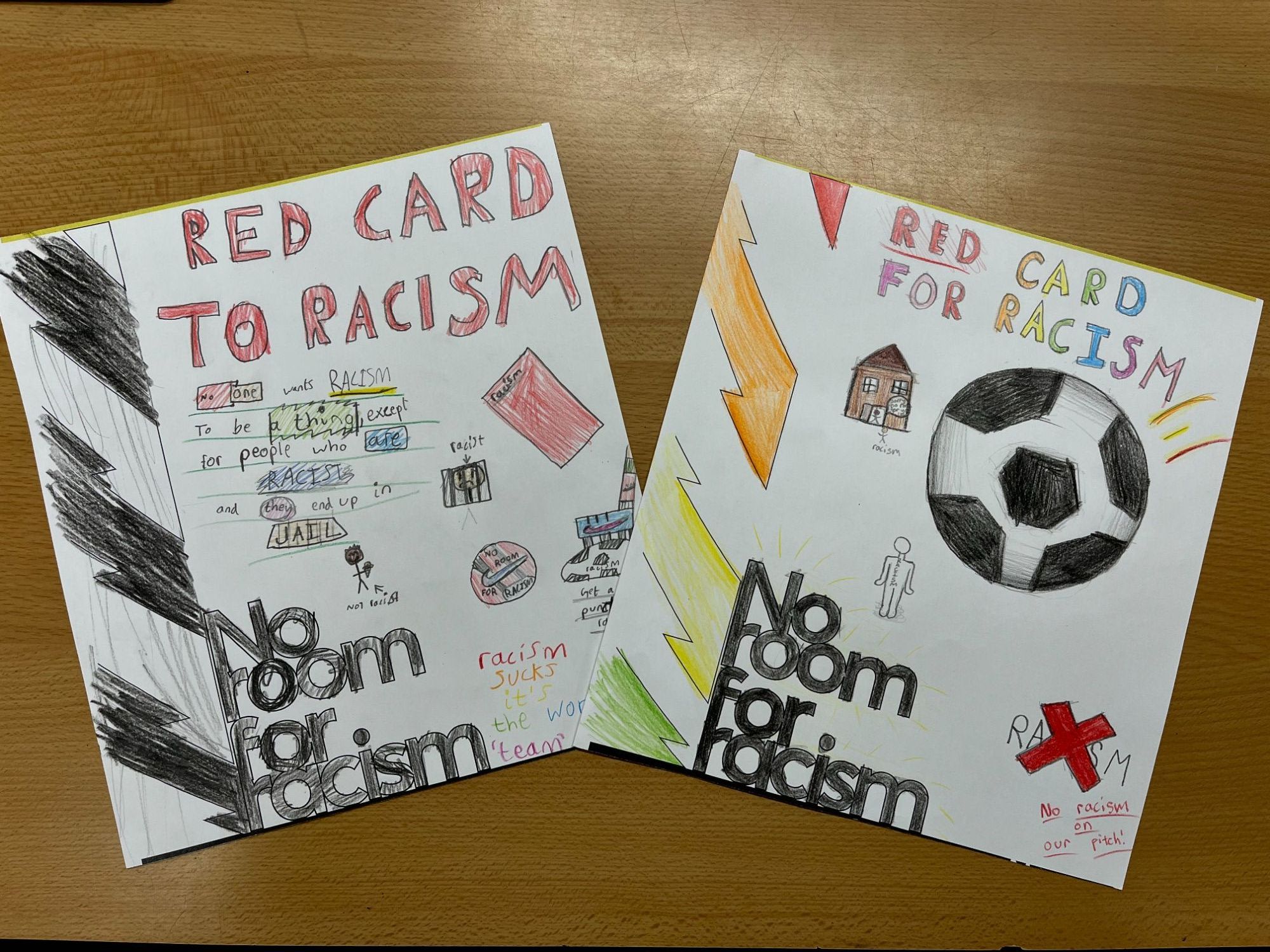 This week, it has been lovely to see the first wave of the 100 Things books coming in and talk to the children about some of the activities that they have been undertaking. In our current Learning Mean the World topic about Walter Tull, we have been looking at the issue of racism in sport and football in particular - the children designed some bold and brilliant posters in their lesson on Thursday after a lively debate.