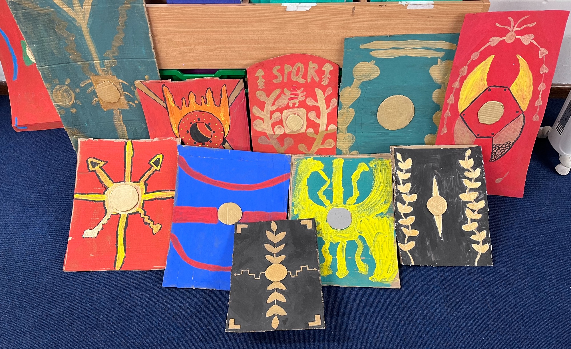 Some fabulous Roman shield designs on display here - all ready for some Roman army manoeuvres when the rain stops! The children have been learning about how the shields were made and the very specific design features that you can see some examples of here.