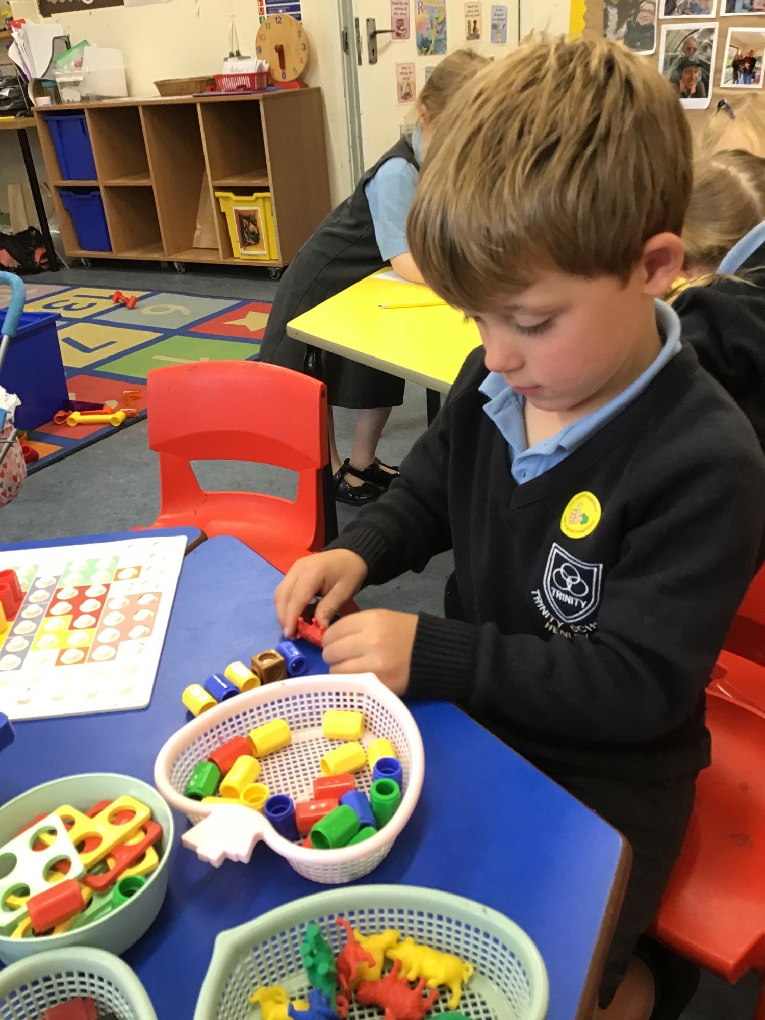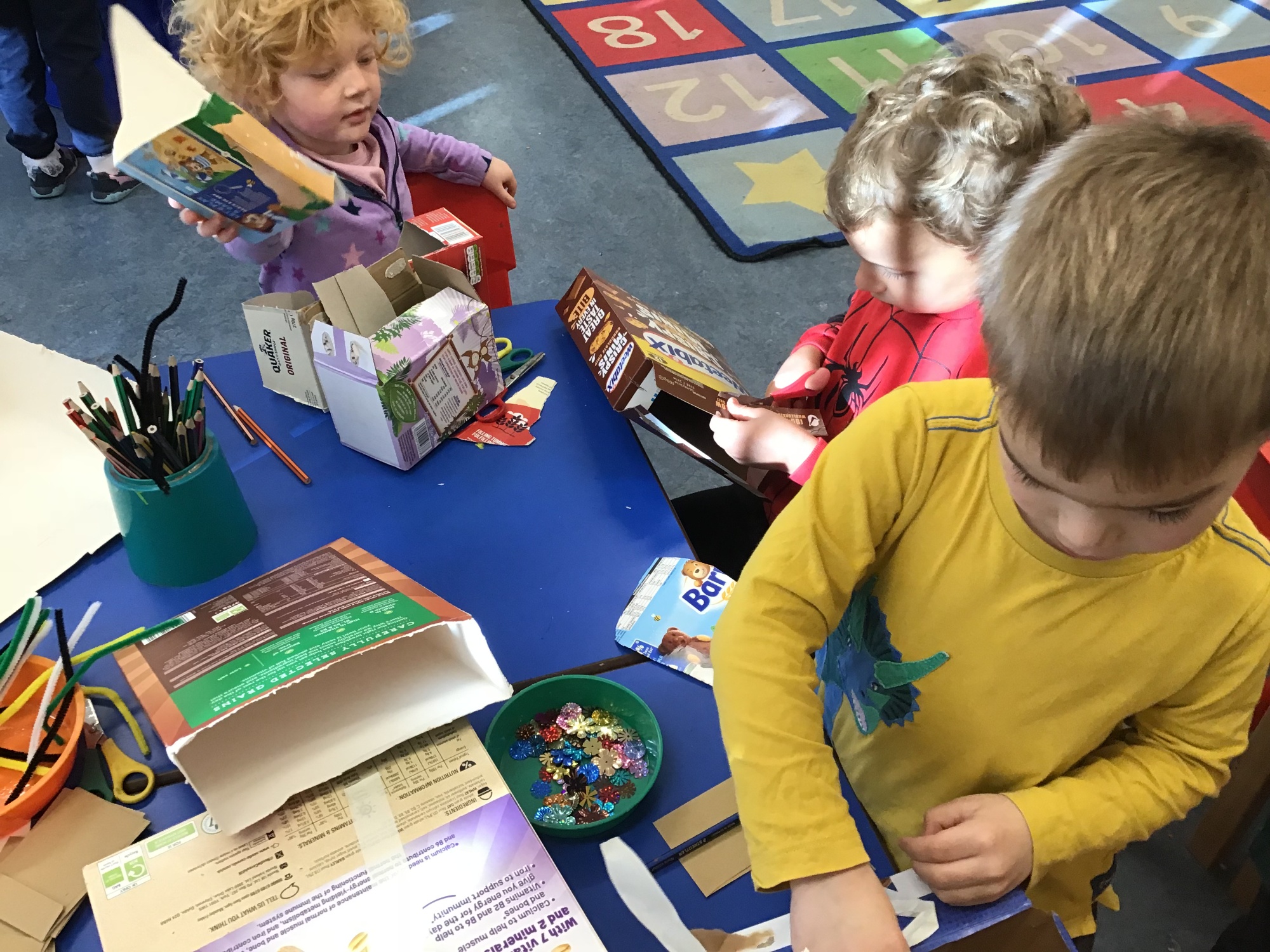 The children in EYFS have been exploring new activities in relation to our unit 'Happy to be me!' They have been making houses out of cardboard boxes and working on their fine motor skills.