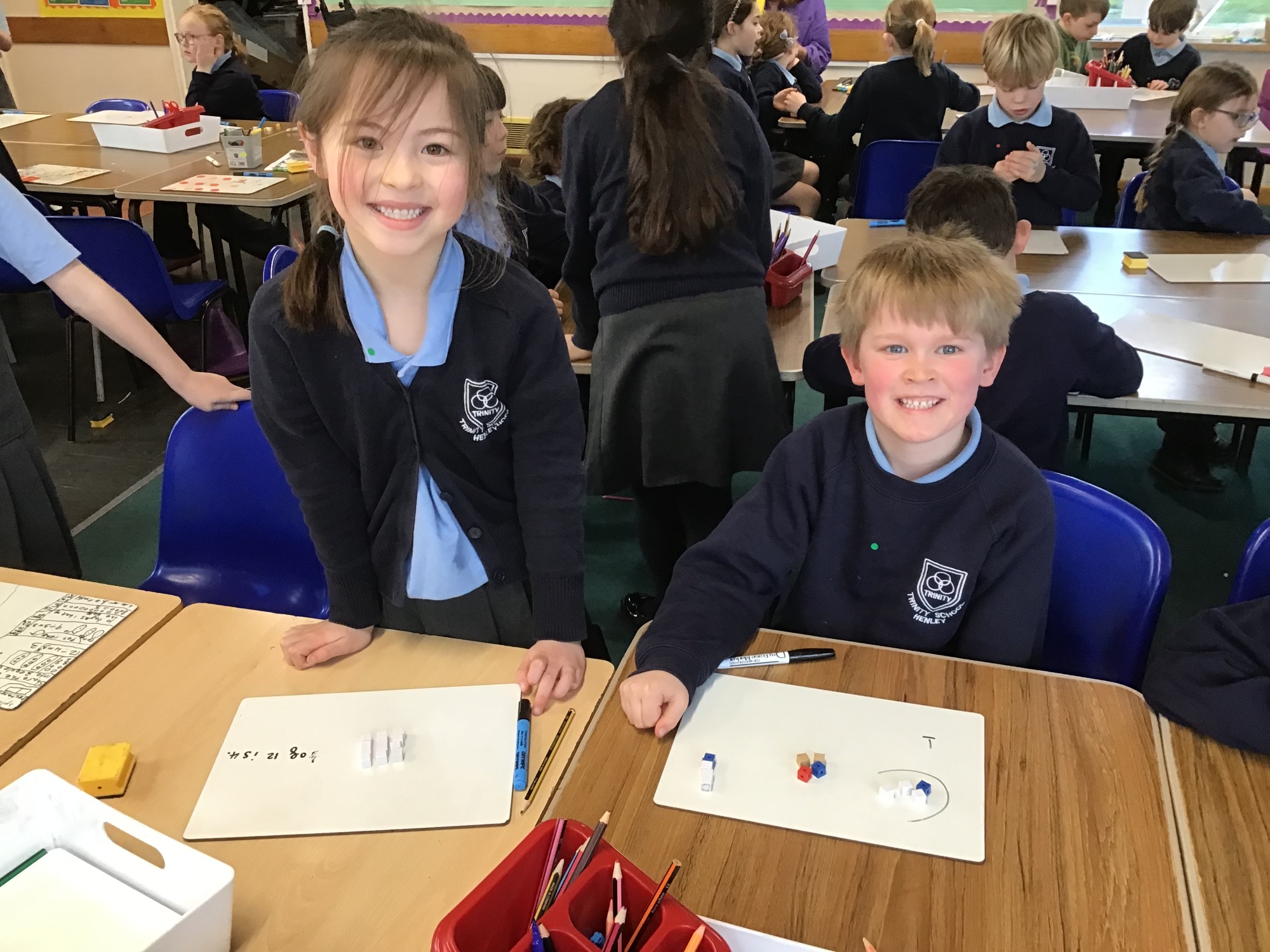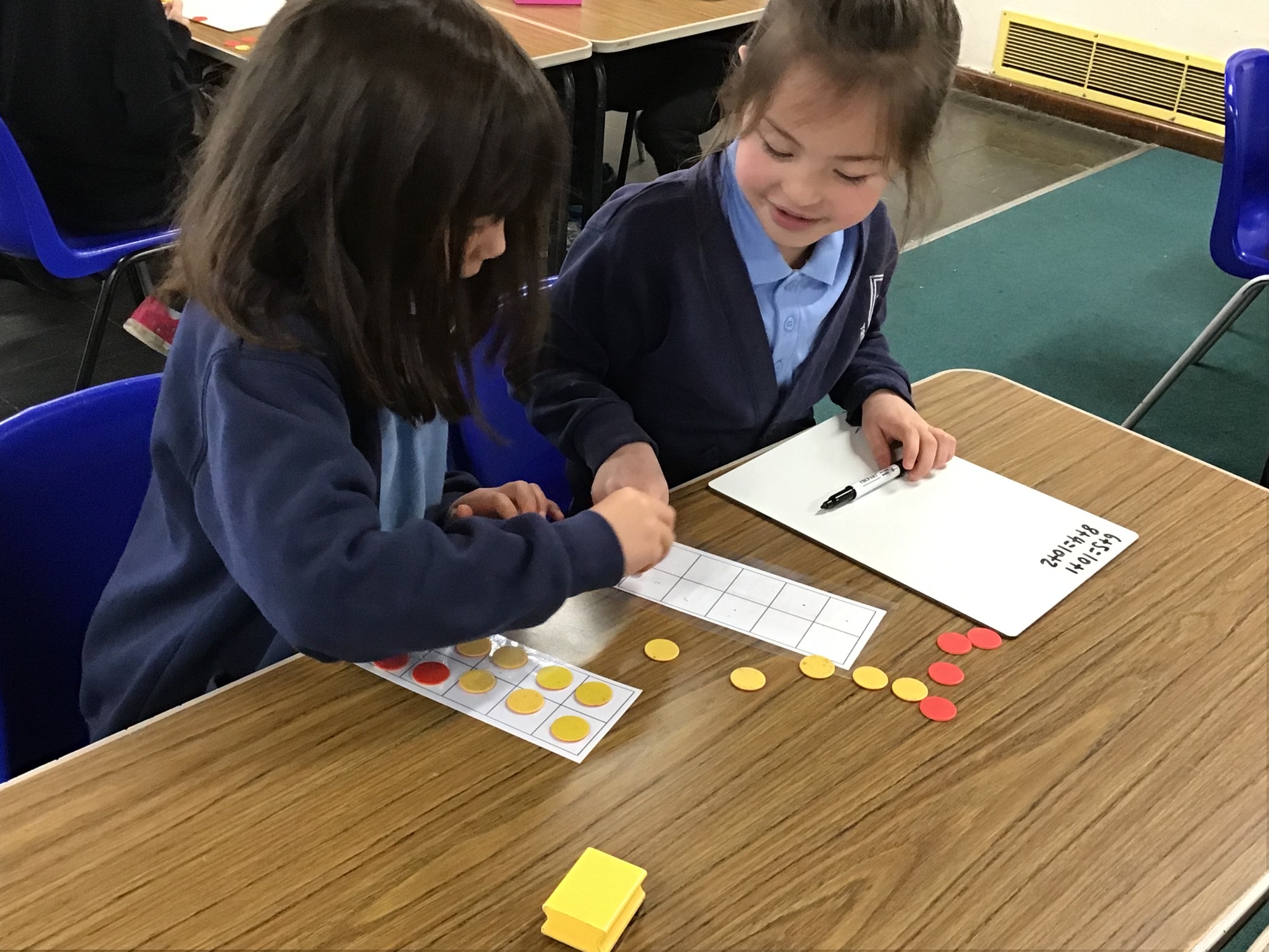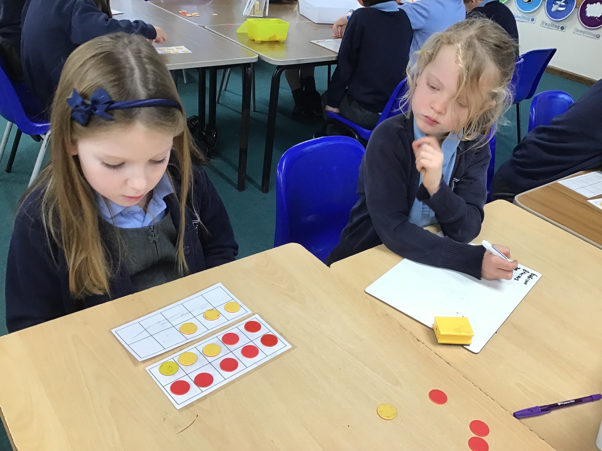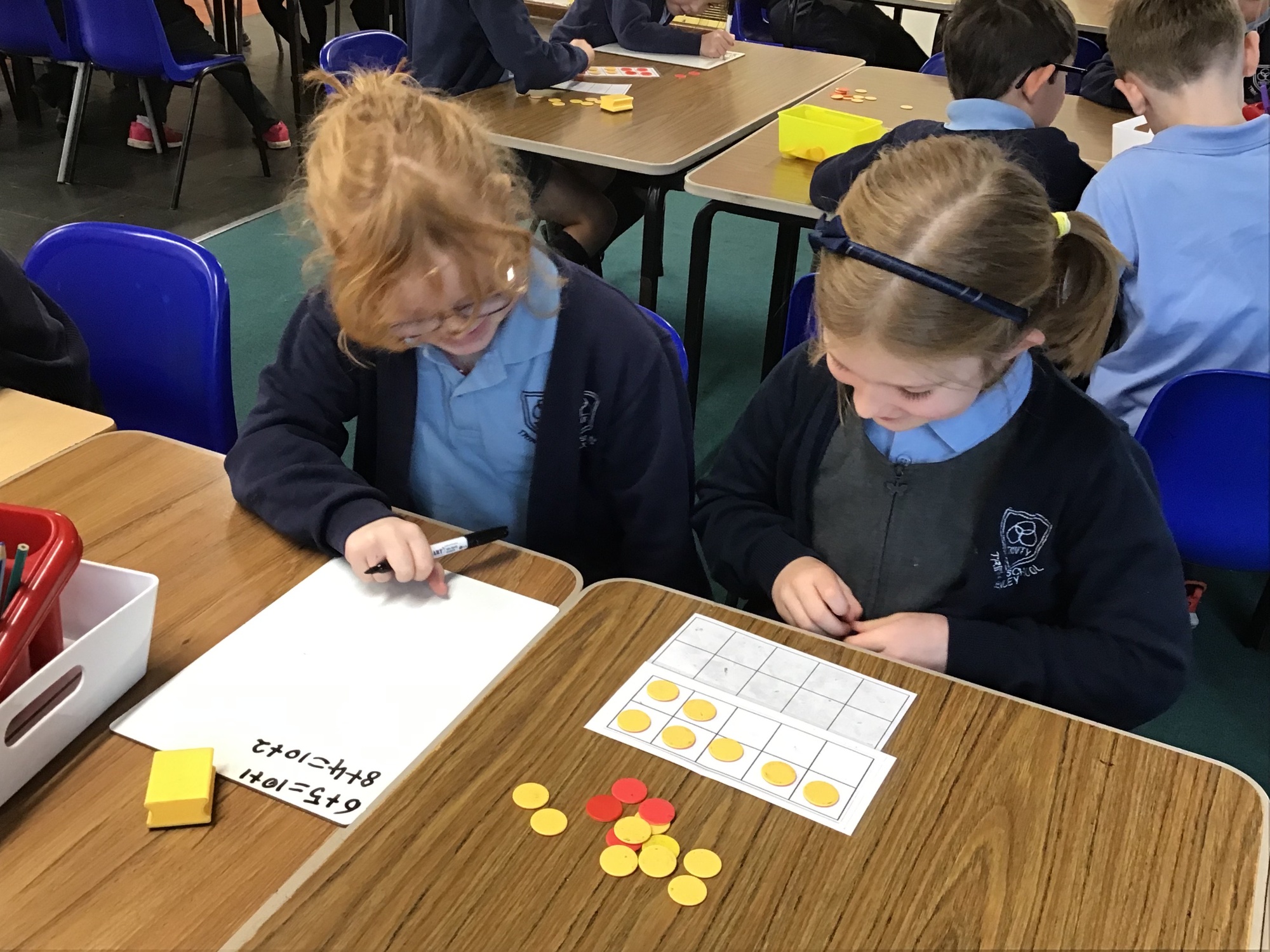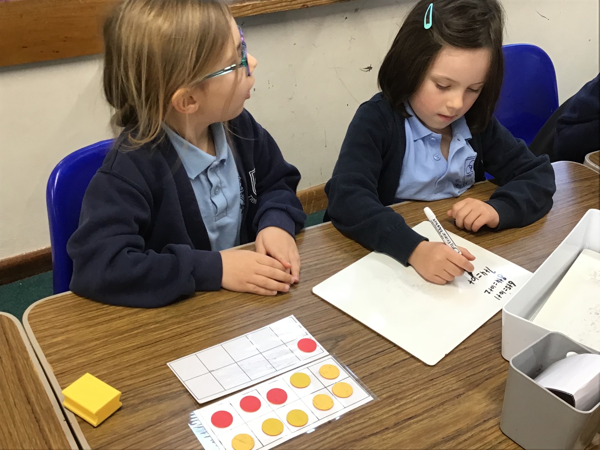 Children in Dahl Class have been working well with their Maths partners. They have been using Tens Frames to solve calculations when bridging over ten. For example, 9+8=10+7 and 6+7=10+3