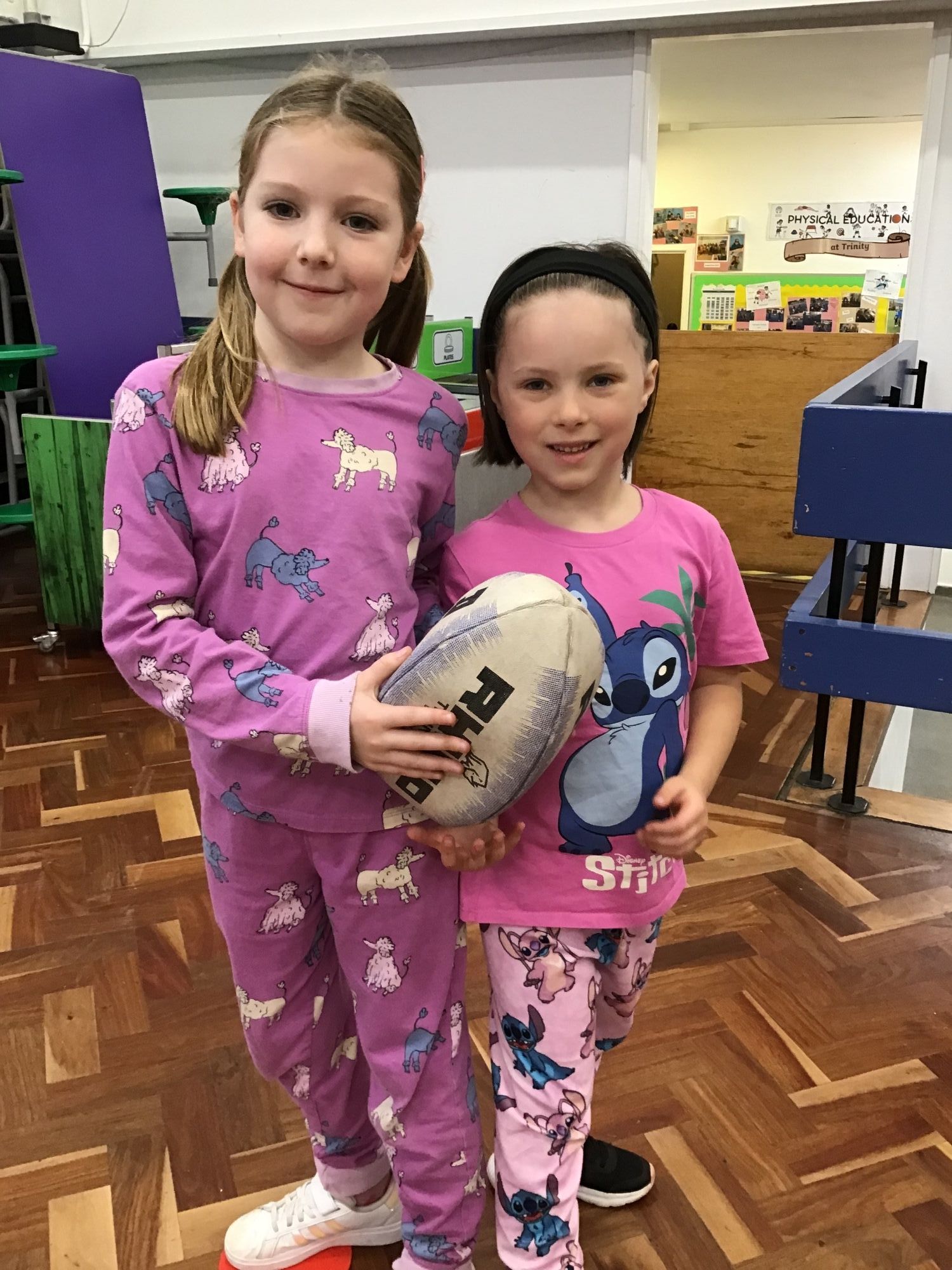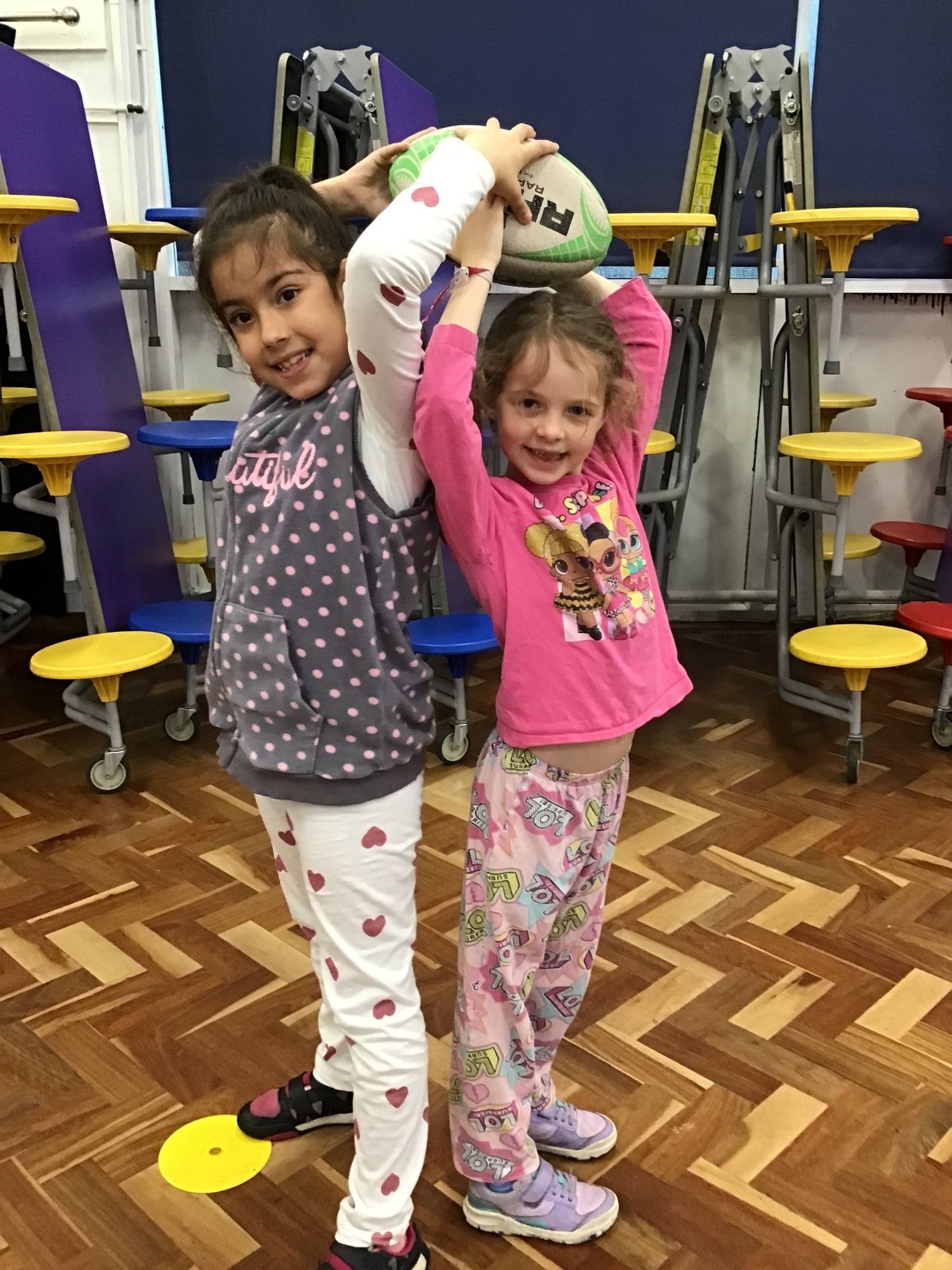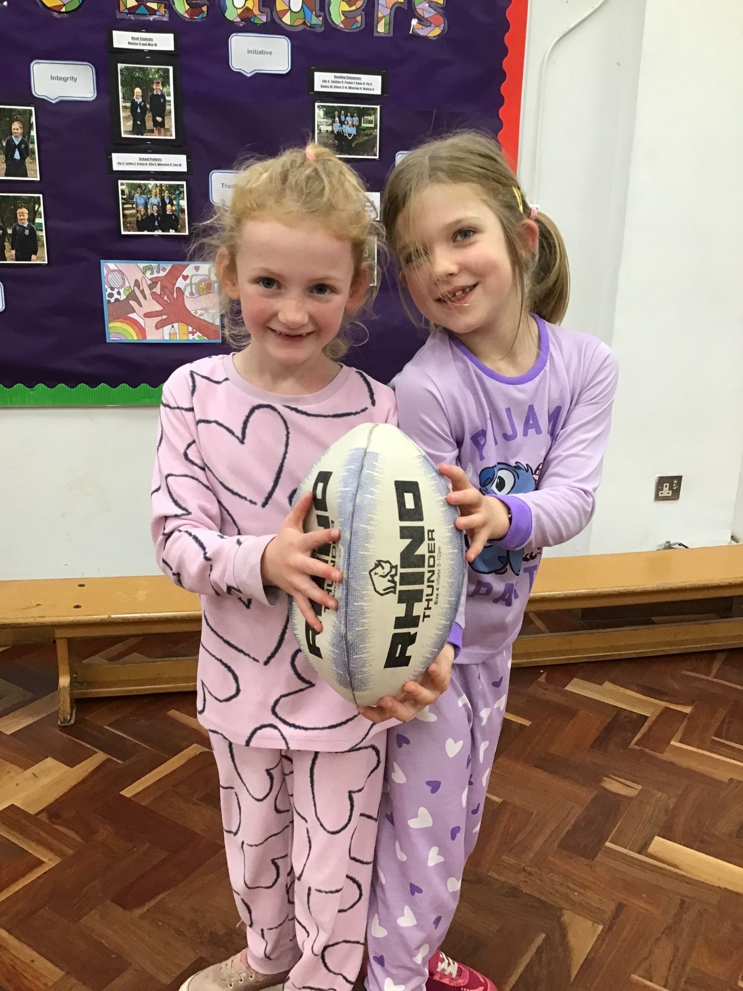 The terrible rain and wearing our pyjamas for Children in Need won’t stop us playing Tag Rugby.