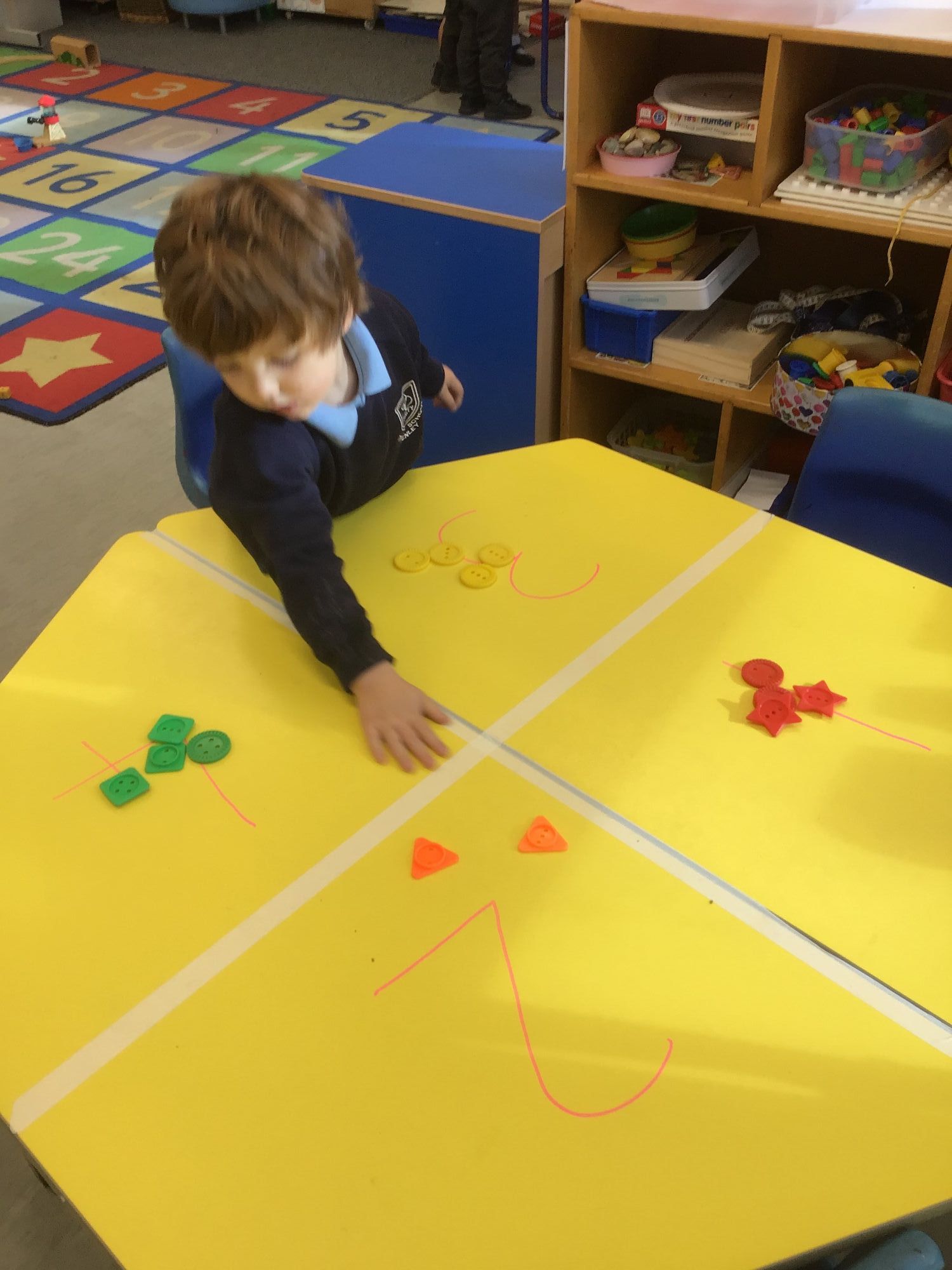 This week we have been looking at sorting objects into different groups based on colour, shape and size. The children were given different criteria to sort the objects and then independently decided on their own criteria for sorting.