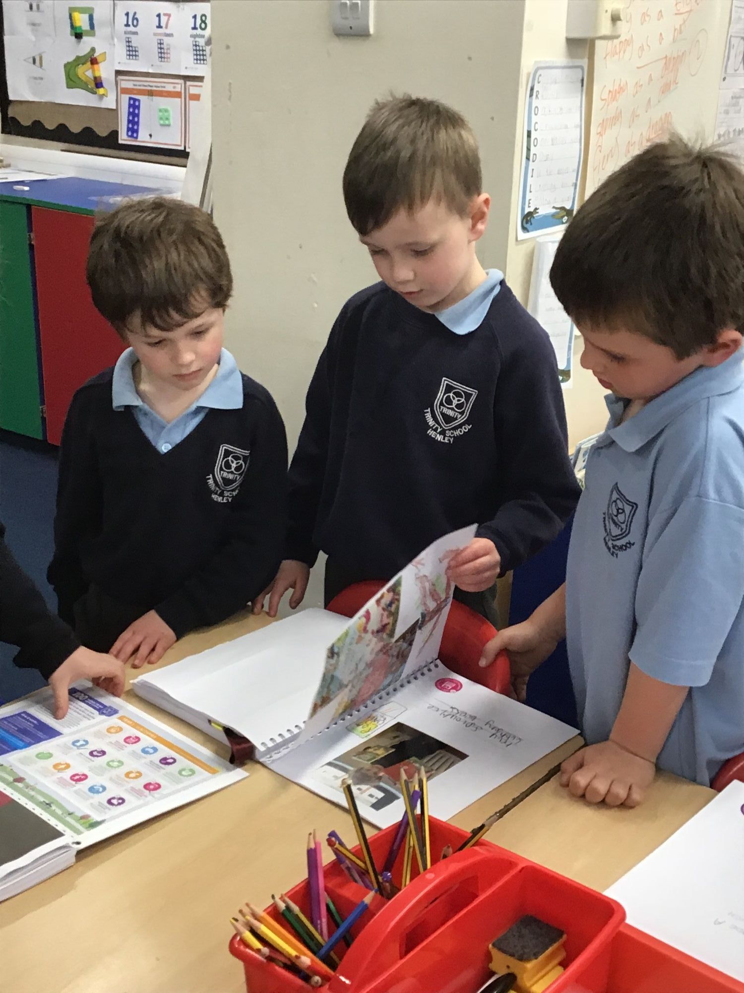 The children shared their '100 Things to do before you leave Trinity' books with each other to see what they have been getting up to at home.