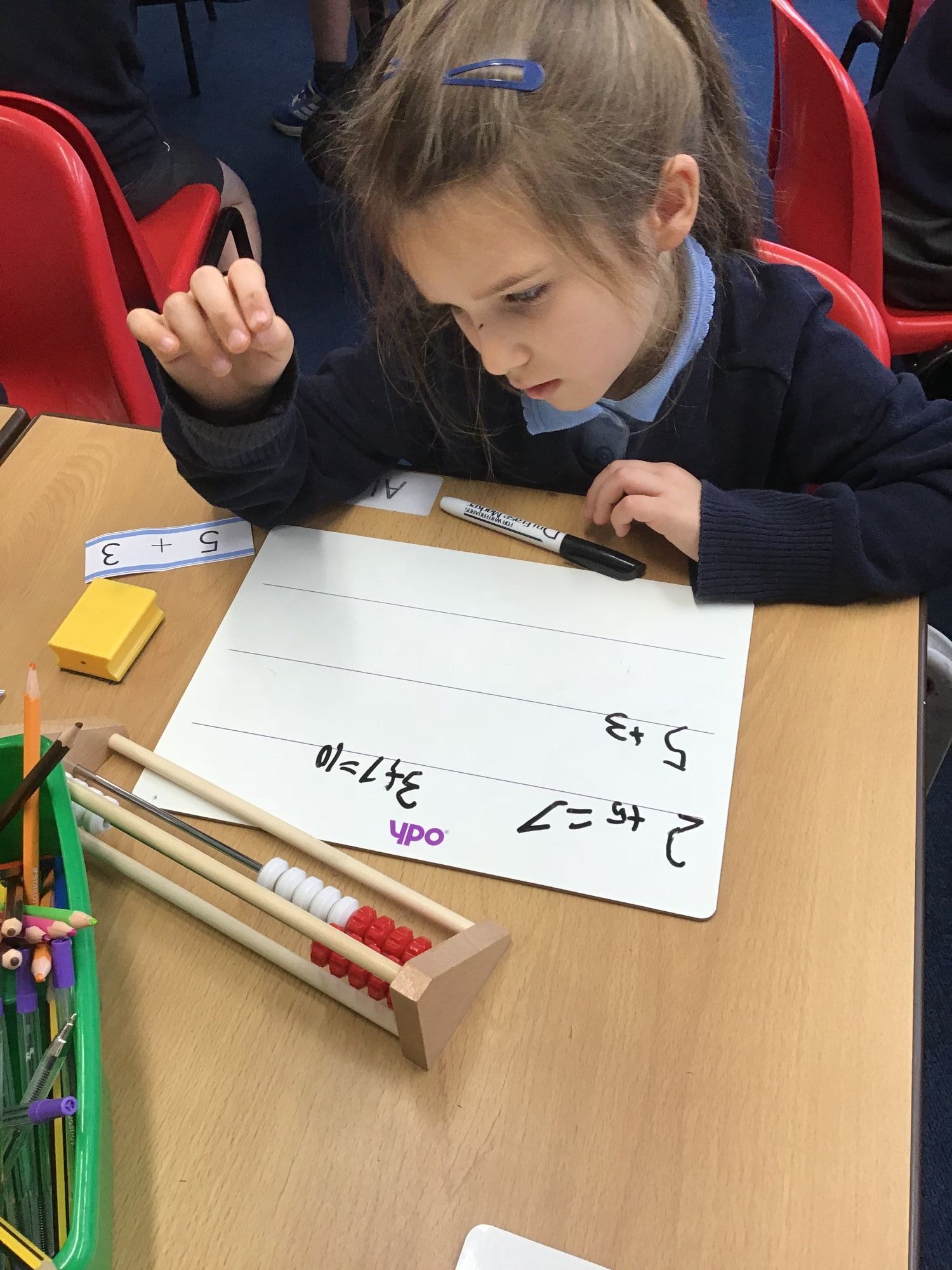 The children are learning to use a new mathematical resource. Practical lesson on addition within 10.
