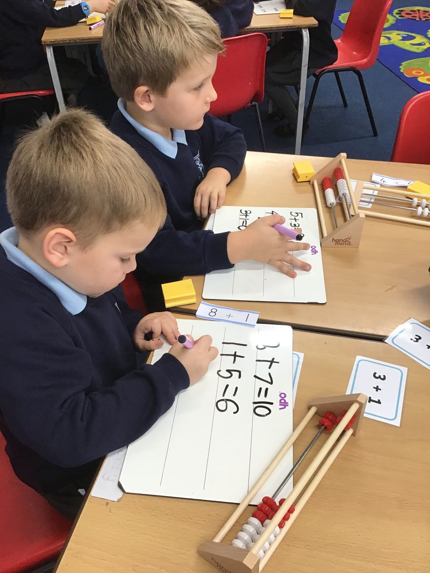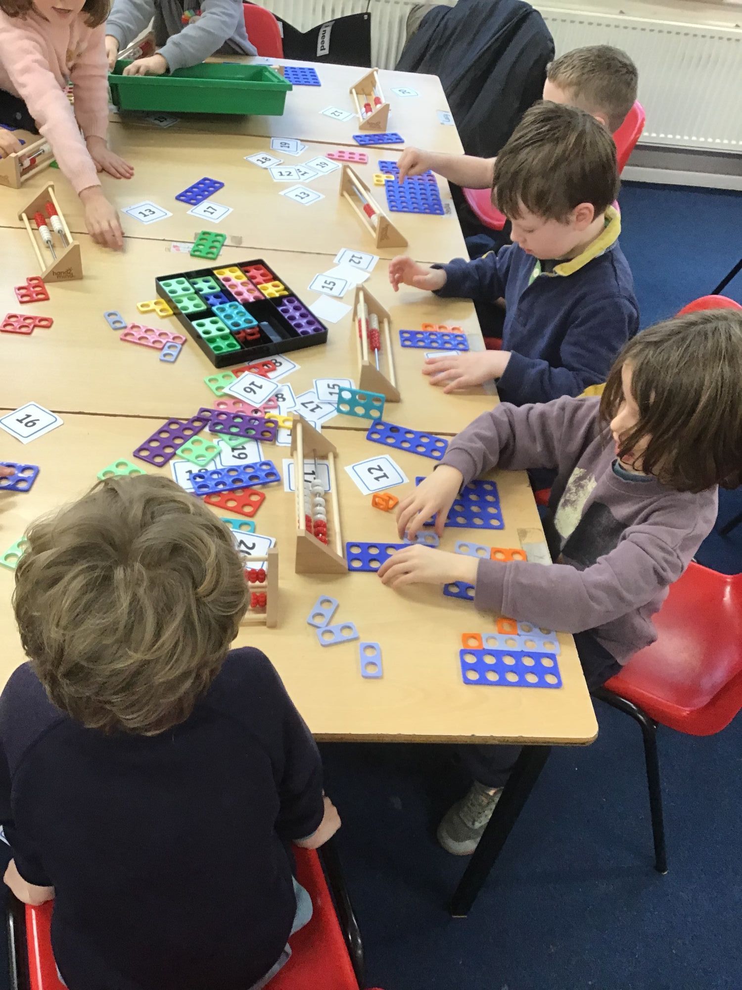 Murphy class have been doing a practical lesson on writing number sentences and using part-whole models and cubes. They have been working collaboratively in pairs.
