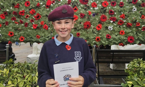 Several pupils, including Head Student Max (pictured), gathered in the Market Place on Sunday to mark Remembrance Day. Across our school, all pupils coloured in a poppy and wrote the name of someone who lost their life in WW1 on the poppy and these will be taken to our Church Service on Tuesday where we gather as a school community to commemorate the service and sacrifice of those in the Armed Forces.