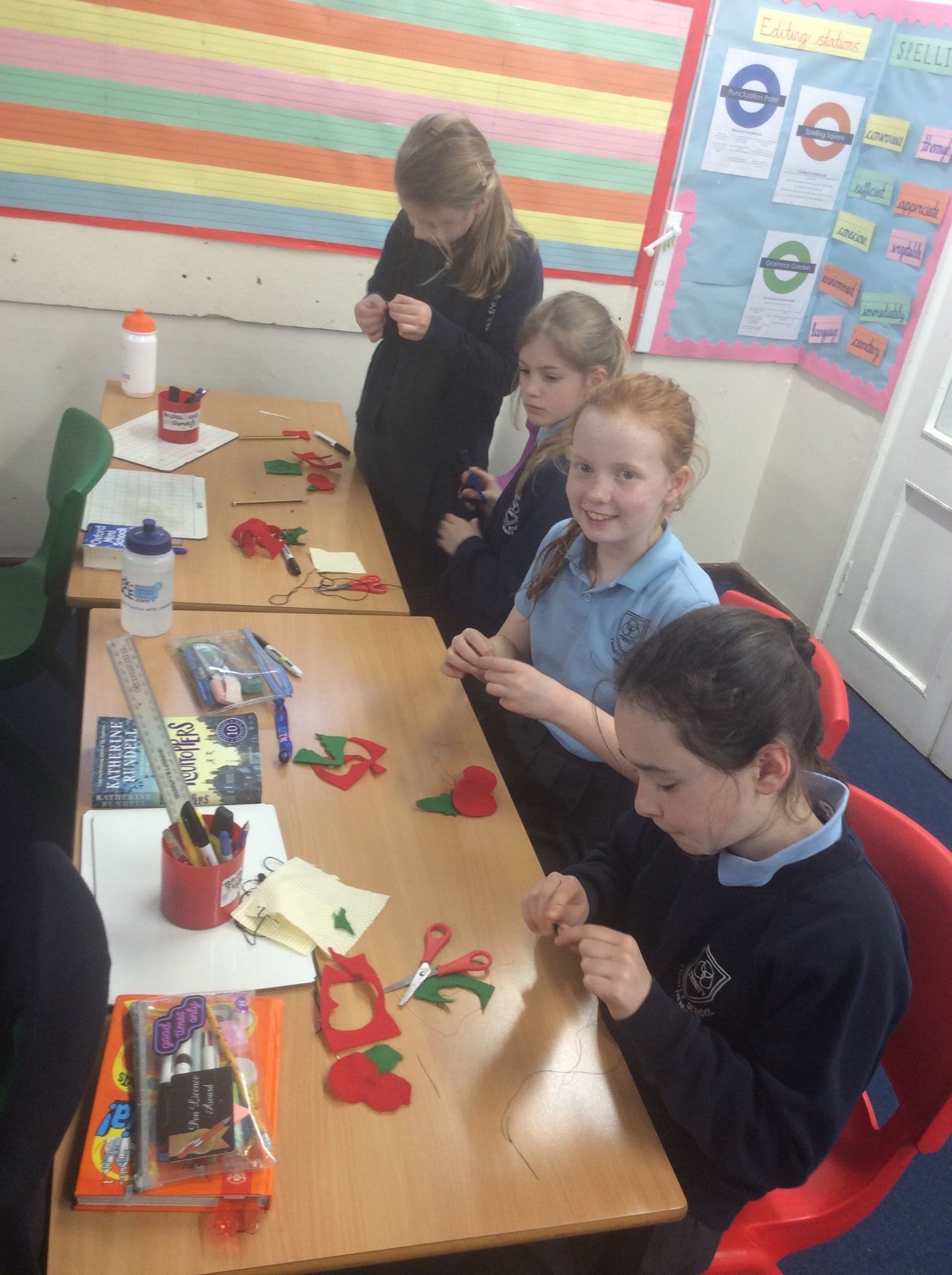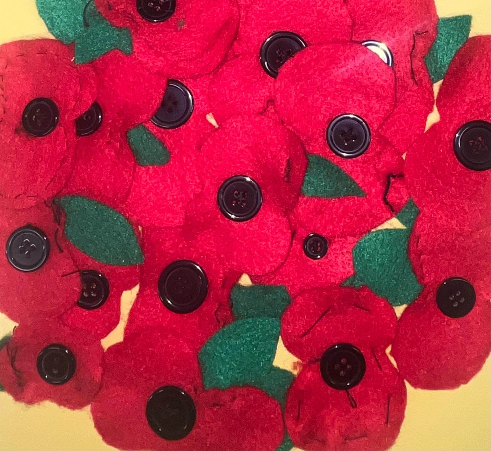 Using some basic sewing skills to attach the button and leaf, we created a really effective and poignant display of our work for Remembrance Day this week.